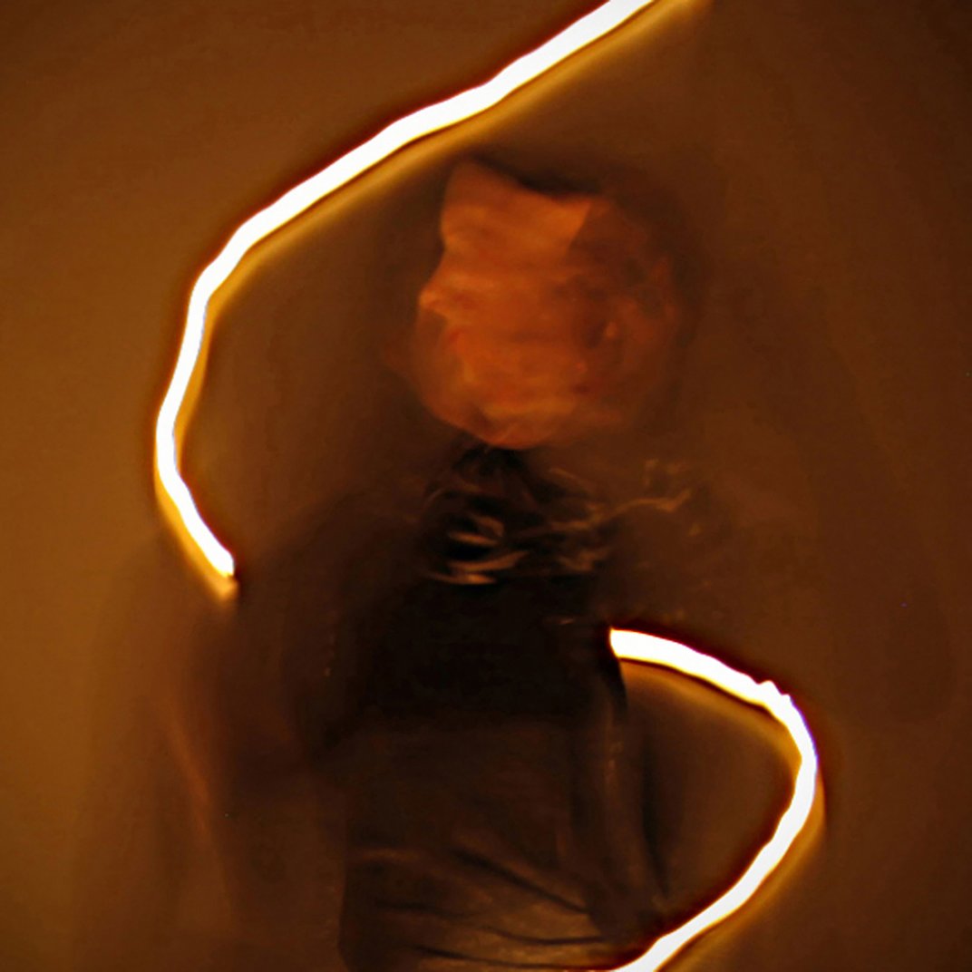 Today physics and metaphysics tells us that everything is built in waves. From the most elementary particles to galaxies but also thoughts and emotions, they can be read in all kind of waves of energy. That fascinates me a lot and the starting point for making this work. The photograph shows a woman with her personal frequency, created by light from above to the earth, through her heart.