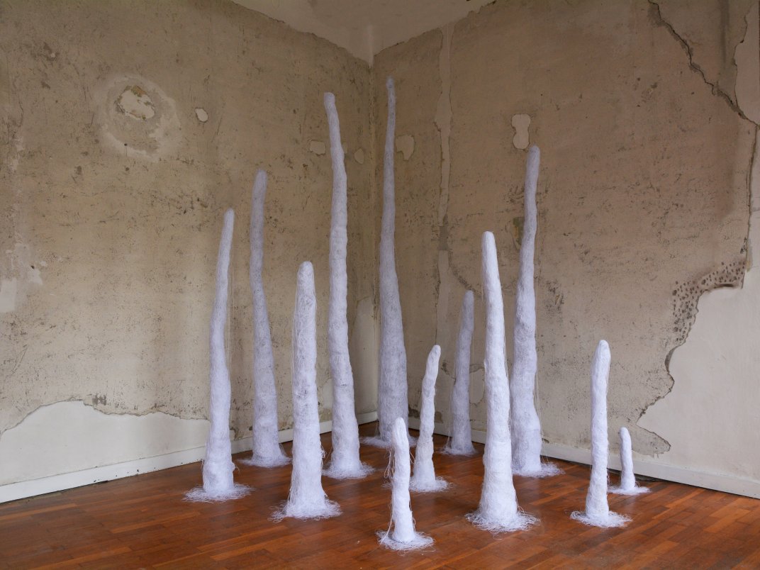 Forme bianche, pure, candide, fredde come la neve si ergono e permettono a chi si confronta con l’opera di avventurarsi nella vicina grotta dei ricordi, là dove i ricordi si fan tanti, uno spazio situato nella profondità di ciascuno, un luogo protetto dove regna il silenzio e l’unico suono percepibile è il gocciolamento delle membrane che avvolgono la grotta.