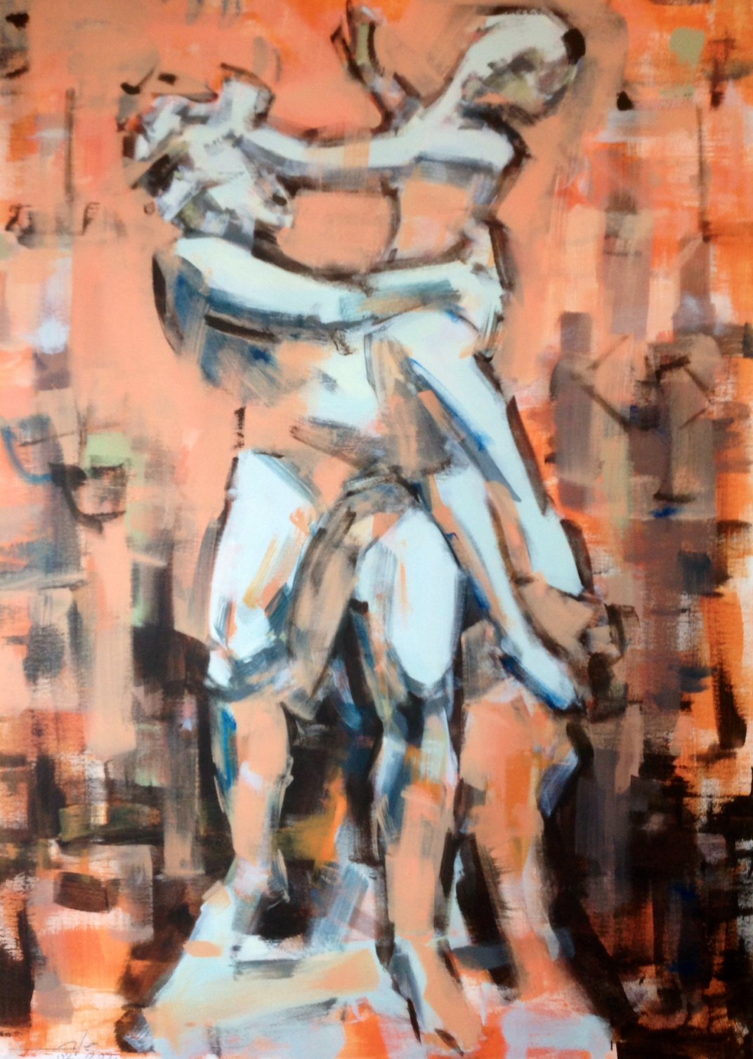 La scelta del soggetto scultoreo mi aiuta nel concepimento di quello che oggi rappresenta la mia ricerca pittorica, il mio stile sintetico e gestuale.