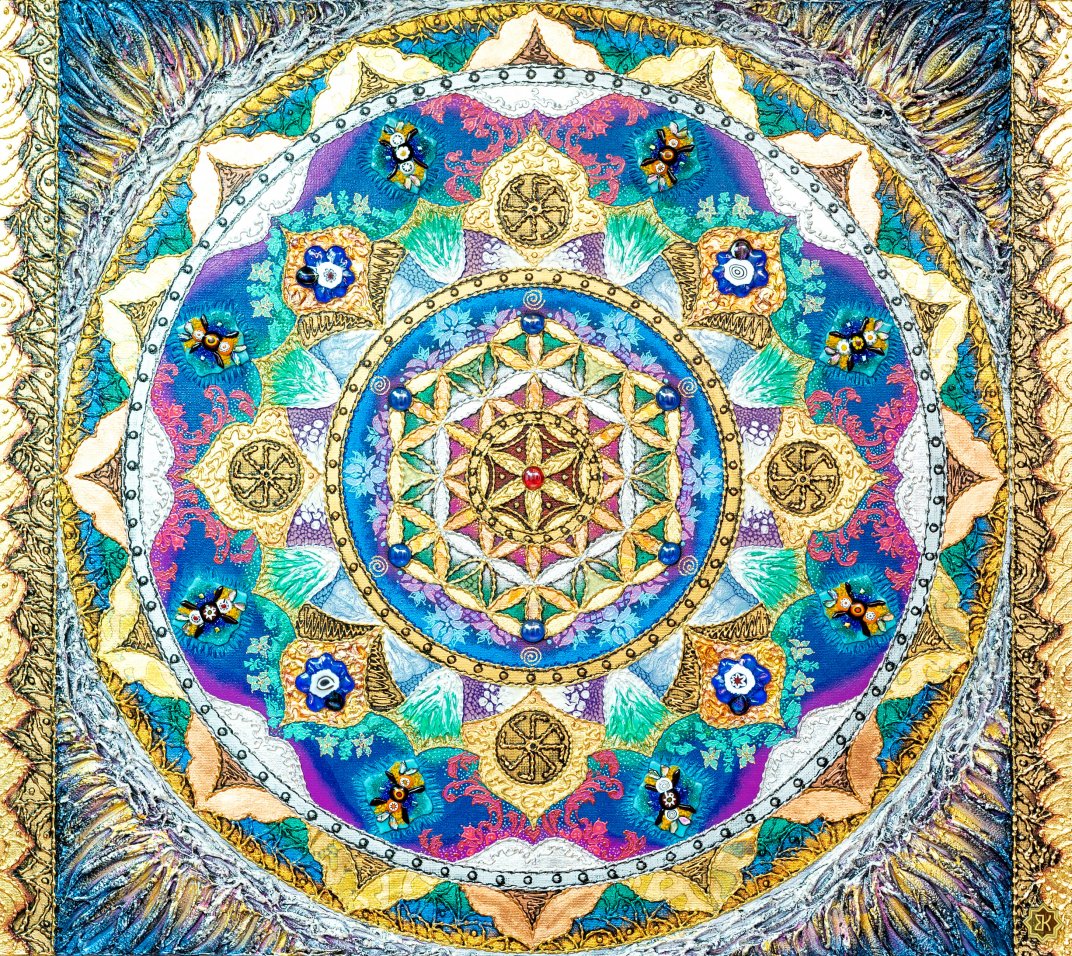 The geometry and symbols reflected on the canvas are created and selected in such a way as to maximize the sensibility, courage and brightness of the female emotional nature. The color palette will help to stabilize the hormonal system, reduce the level of anxiety, and fill you with joy from every moment you live.