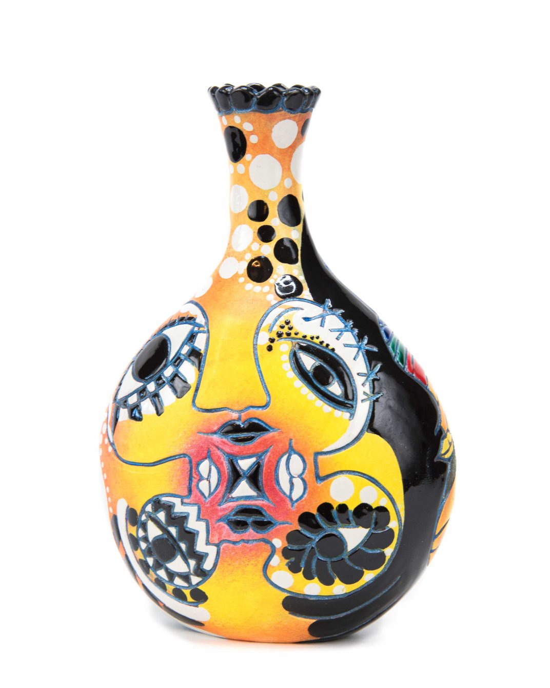 Slip cast form. Fired to cone 01. Glaze fired to cone 07. Finished with acrylics and oils. Weight: 1 lb. Dimensions: 11"h x 7"w x 4"d.