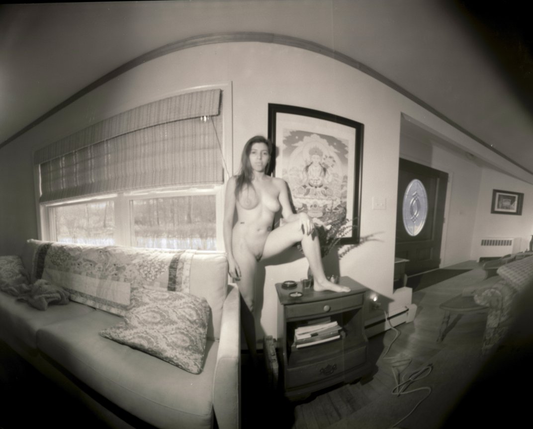 Pinhole camera portrait of Ann nude at home in Woodstock, New York, USA