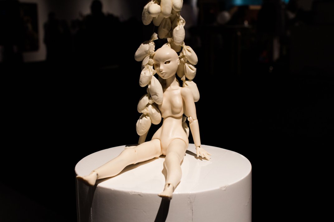 I reference the theme of personas, alter egos and the subject of masks and vessels. Emotions and experiences that stem from real-life happenings, are in turn romanticised and expressed through the dolls’ character or persona.
