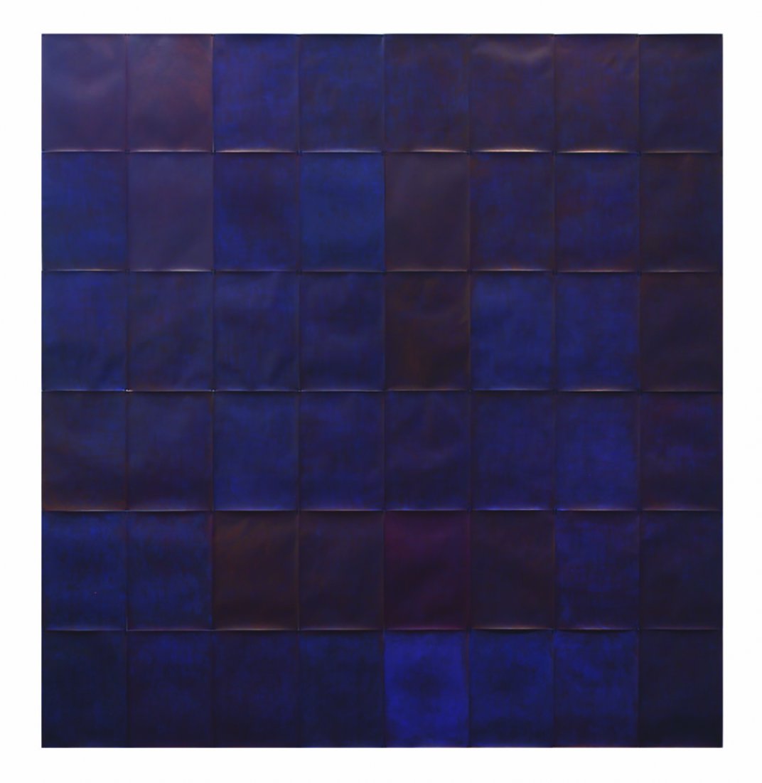I segni d’inchiostro, infinitesimi e indefiniti che, instancabilmente, l’artista dipana sui fogli di carta, s’infittiscono come indelebili notti uniformi o metaforiche, nere o blu. Talvolta è il blu che filtra nel nero, oppure è il nero che annotta ogni blu.