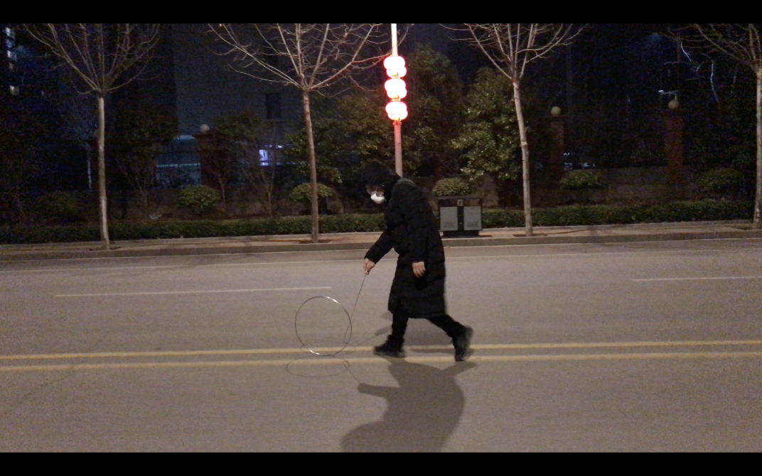Pushing iron hoops is a special memory of our children born in the 1980s. At that time, running barefoot and recklessly on the road seemed to be a paradise for us to play in all places, but I don't know how to find a place to play recklessly when I grow up. The scene in the video is downstairs of my community. It's usually busy at 9:00 p.m., but now I can't see people because of the epidemic. My friends and I play with impunity.