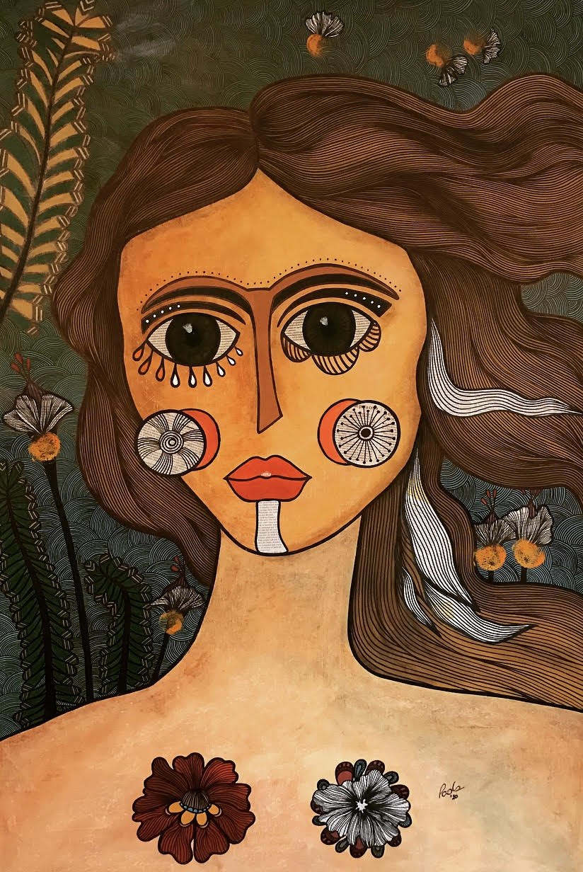 I use acrylics and mixed media: I play a lot with markers, collage and pastels. What has always attracted the attention of my paintings are the intense and pronounced colors that I use, but that is how I manage to get that force that I seek to transmit and at the same time allow me to bring warmth to the composition.