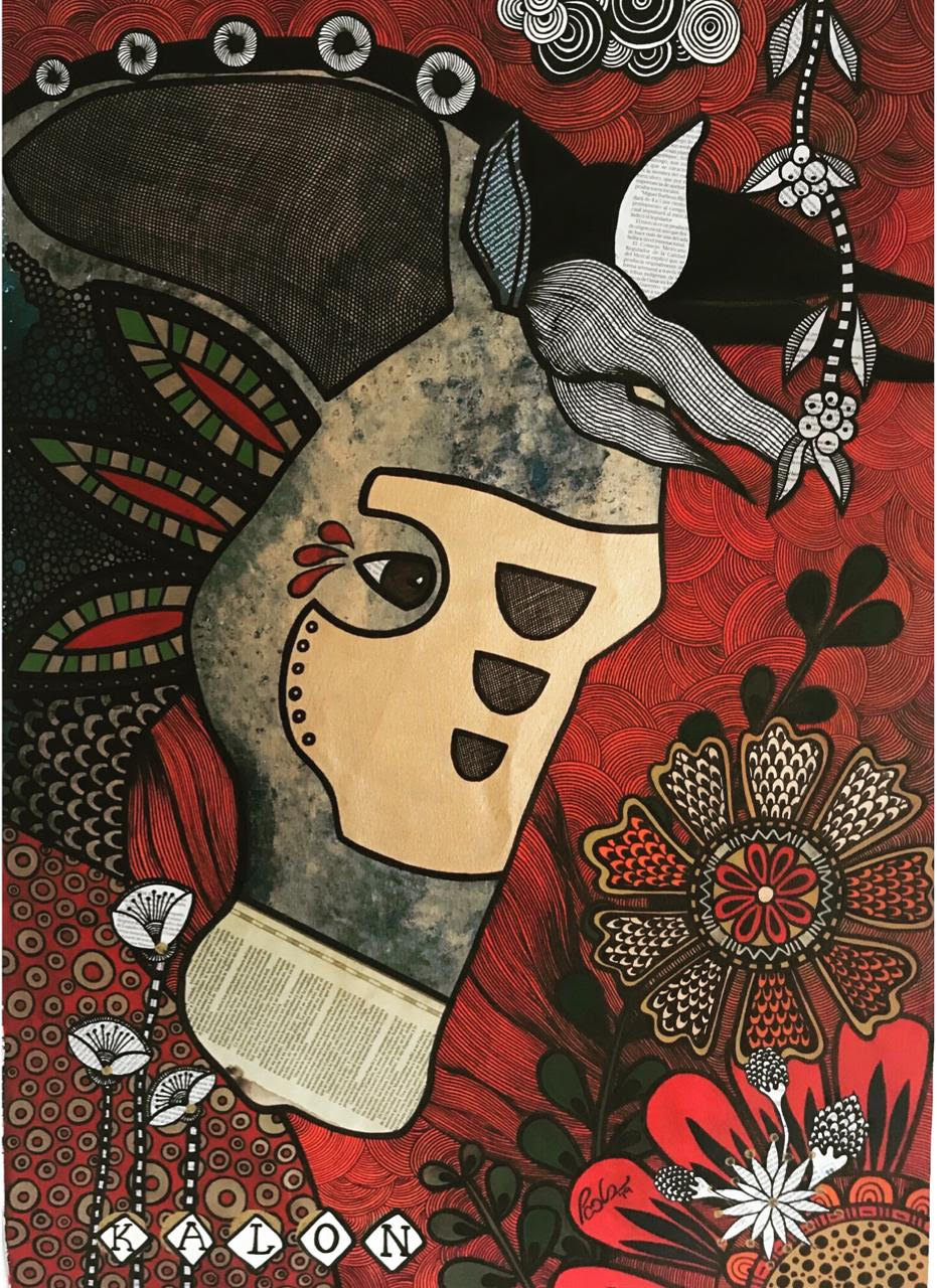 I use acrylics and mixed media: I play a lot with markers, collage and pastels. What has always attracted the attention of my paintings are the intense and pronounced colors that I use, but that is how I manage to get that force that I seek to transmit and at the same time allow me to bring warmth to the composition.