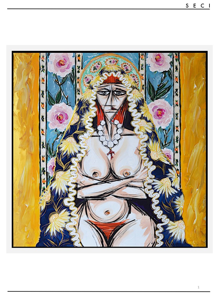 The work "Precious Lover" is the story with strongly emotional and emotional tones, by a disappointed lover, full of energetic bright colors and chromatic contrasts, but alone or better perhaps has remained only after an apex with her lover . Reflecting on his life he questions himself, the incisive and powerful sign, with heavy and light contours contrasts with the delicacy of the floral wallpaper as in a secret bodoir, ready to reveal the inner and hidden essence of the woman.