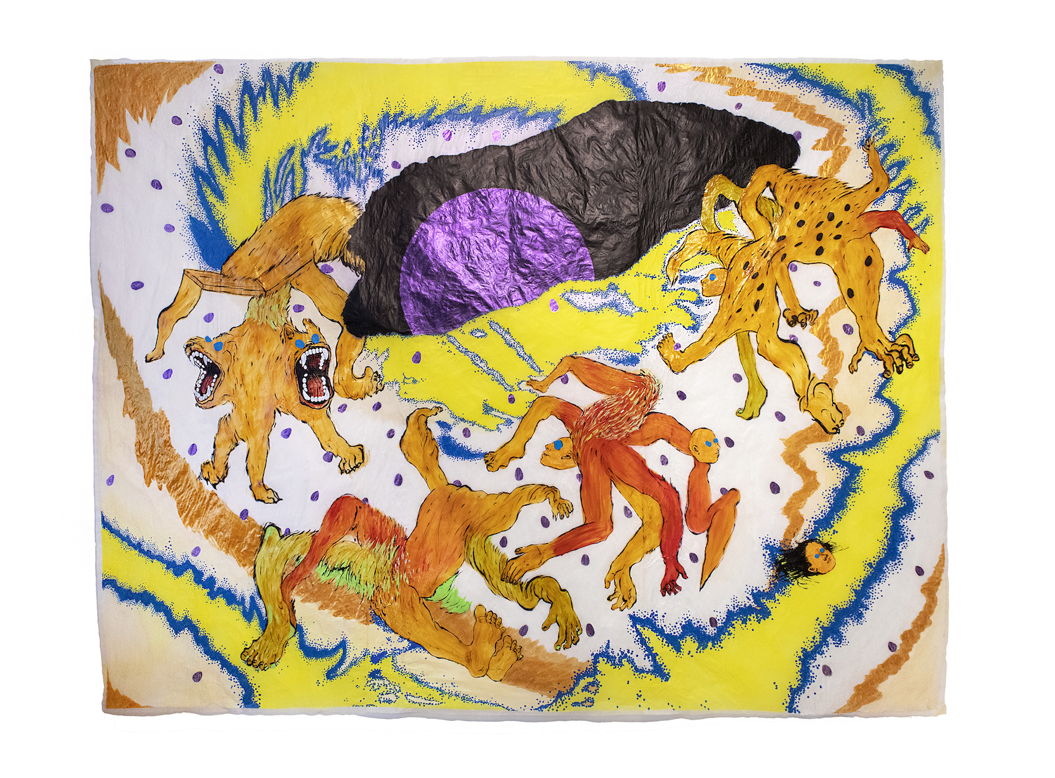'The storm brings light.', acrylic on translucent paper, 173x226cm, 2020