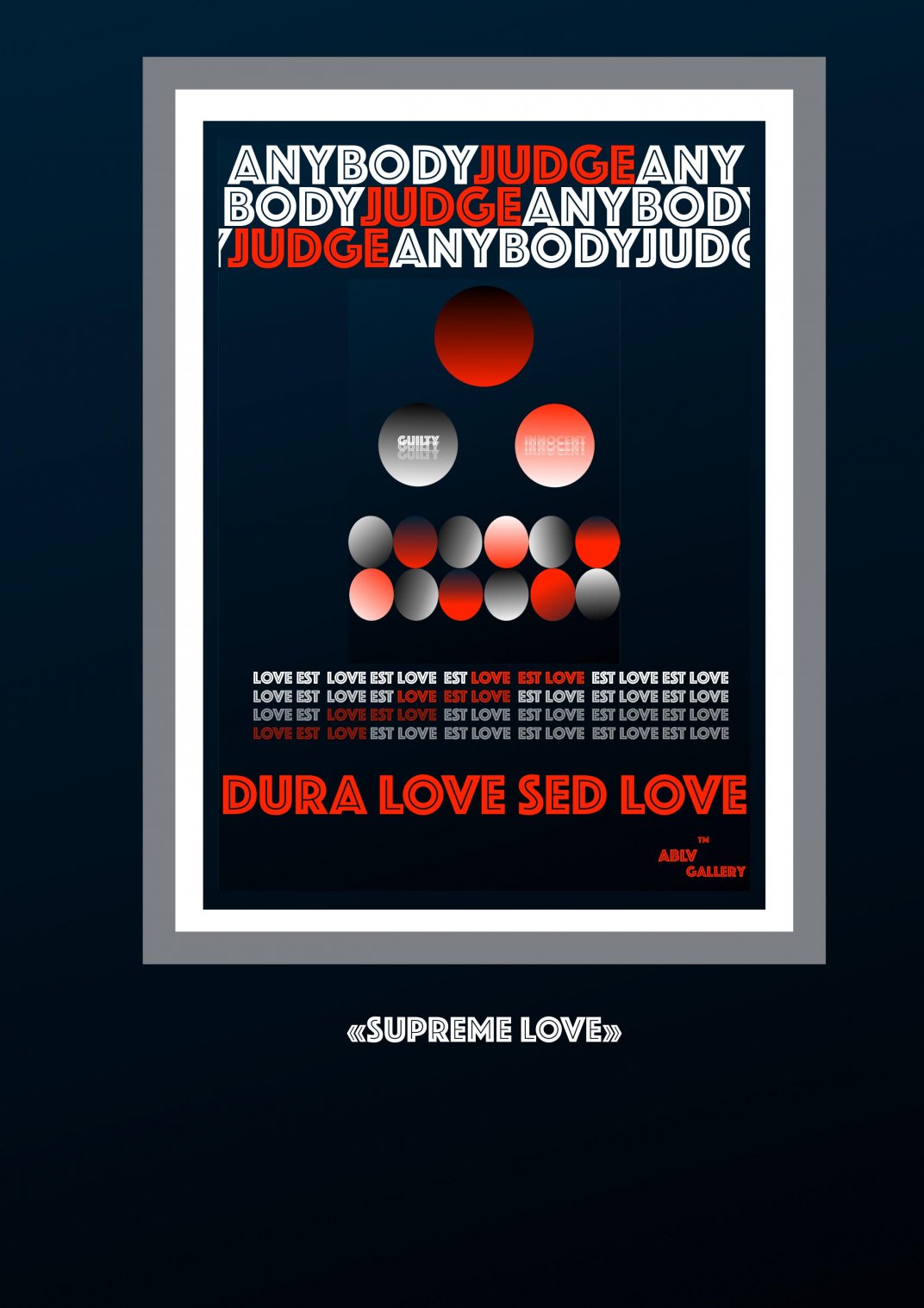 «Supreme Love» Digital graphics. Broken hearts, deceived feelings, infidelities and forgeries... Many of us would like to see justice done in "love cases". To achieve justice and revenge, to establish prohibitions and restrictions on their abuser - the goal that many would like to implement more than once. Is there a fault for disliking and what is the responsibility for it? The Central part of the picture is the trial under the chairmanship of the judge-arbitrator. We see the sides of the trial: the Prosecutor and the defendant, each of whom tries to convince the panel of jurors that they are right. The color scheme is represented by red (love, compassion) and black (loss, guilt) tones on a dark blue background (heaven). If you look closely, the opinions of the jury are divided, there is no clear answer to the questions put to them by the court. The work refers to the biblical theme of the Last judgment and the inevitability of punishment for our sins, which were repeatedly described by the Great masters-Michelangelo, Bosch, Vasnetsov and others. The three large circles also refer to the symbol of peace and the Trinity of Roerich, which in this work are not equal...yet. Whether we will be able to avoid the Supreme court on "matters of love" before the Almighty and how many volumes Your case will have cannot be definitely said. However, we must remember that you can always ask for mercy, because if You were able to love once, it is possible that love is the way to save Your soul. DURA LOVE SED LOVE (love is harsh but it is love) - paraphrased the famous Latin expression DURA LEX SED LEX (the law is harsh, but it is law).