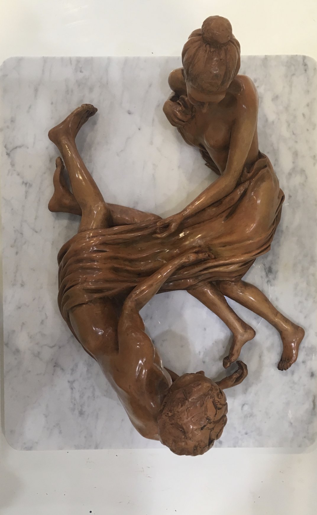 I due amanti: essa rappresenta il corteggiamento da parte di due ragazzi che legati insieme da un tessuto contribuisce a rafforzare ancor di più la scultura e restituisce l'idea dell'infinito amore.