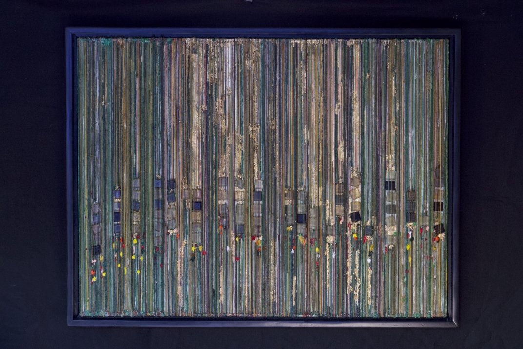 My canvases are attempts to create emotional narratives with kinetic energy. They are conceptual in that I collage my landscapes using line as pixilation, textures, Glass tile and metal foils, in unconventional ways, to convey moments and subtle movements in nature. Not necessarily as nature appears but as nature feels: unspoken, indescribable and sometimes chaotic. In my arboreal neighbourhood all the houses are hidden behind the trees. All one can see of then are the windows when they reflect the sunlight and the addresses on the street.
