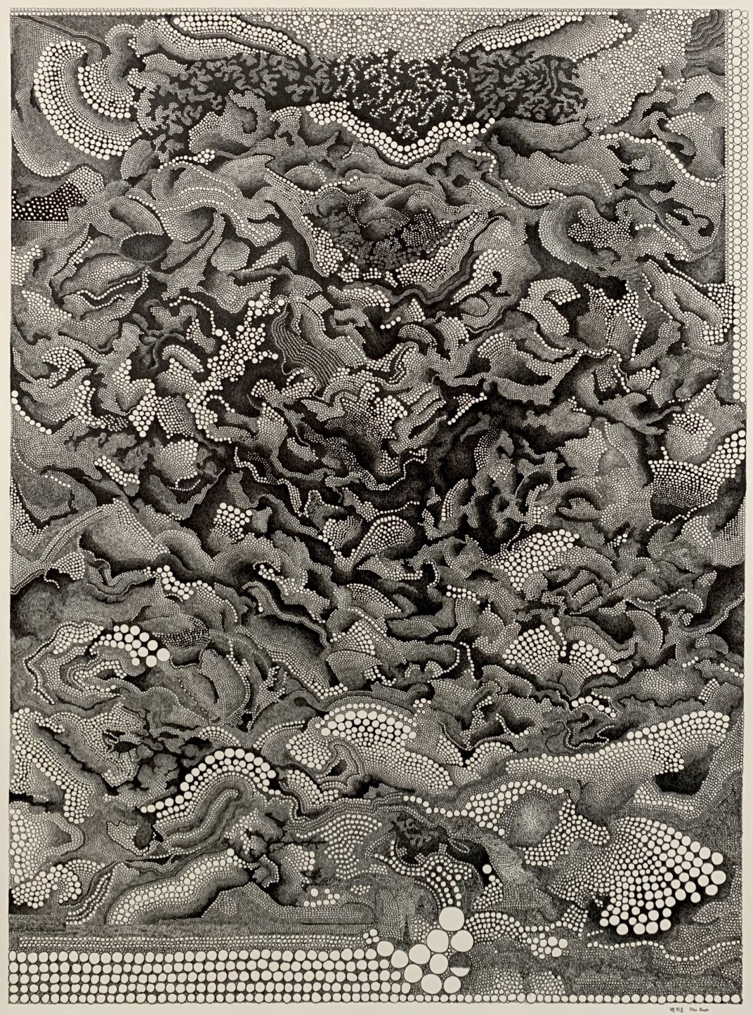 This piece captures unpleasant feelings. By drawing the whole piece in a state of subconsciousness, I was able to reflect pure reality, pure feelings. However, it also allowed me a space to seize extreme feelings like anger that usually stays momentarily. This piece is filled only with circles and dots. You will not see anything clear when you are looking closely at it. Also, even from looking at it in the distance, you won't be able to see the clear image, just like you can't see your emotions.
