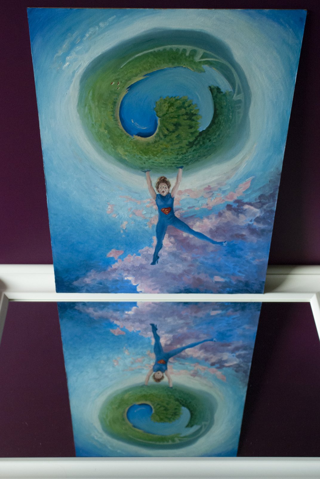 This work show that sometimes we live in world of make-belive, but when we get an eyeful on the mirror, we can see only somebody that conjure in his really small world.