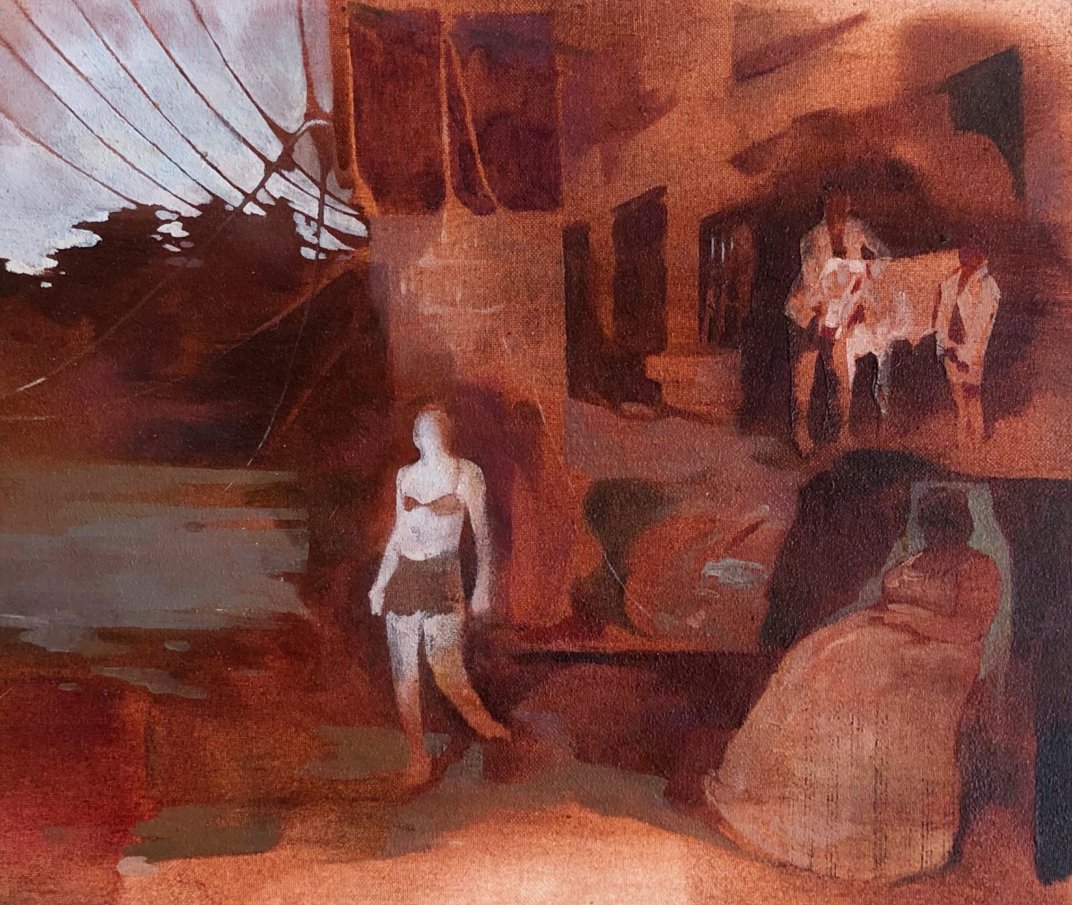 Gli innocenti olio su tela , 33x28cm La storia di vedere strane immagini. Il silenzio e l'oscurità sono un mondo misterioso e spaventoso al cui interno il mio disagio aumenta, espandendosi in tutto il corpo. Se voglio che la paura scompaia, la luce del sole che ho dentro deve diventare sempre più abbagliante. Quando il mio cuore si acquieta e riesco a percepirne le pulsioni, a scandire i respiri, in questo preciso istante scopro che la mia vita splende