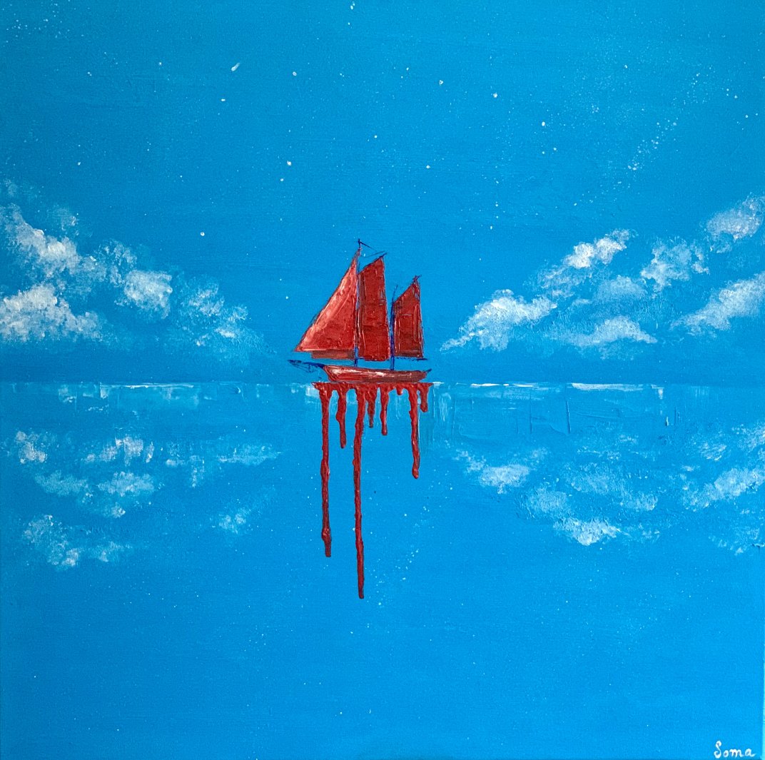 This is an abstract painting made by oil on canvas. The size is 60 x 60.