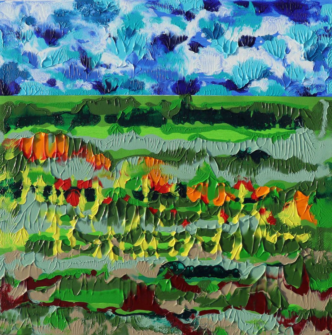I have used Australian Poet Dorothea Mackellar’s “My Country” as my compass with particular guidance from her words “…for flood and fire and famine she pays us back threefold…..”. I sought to capture her “sapphire-misted mountains”, “the filmy veil of greenness that thickens as we gaze” and “the green tangle of the brushes”. I then interlaced my own dreams of what our country might look like in a Perfect World.