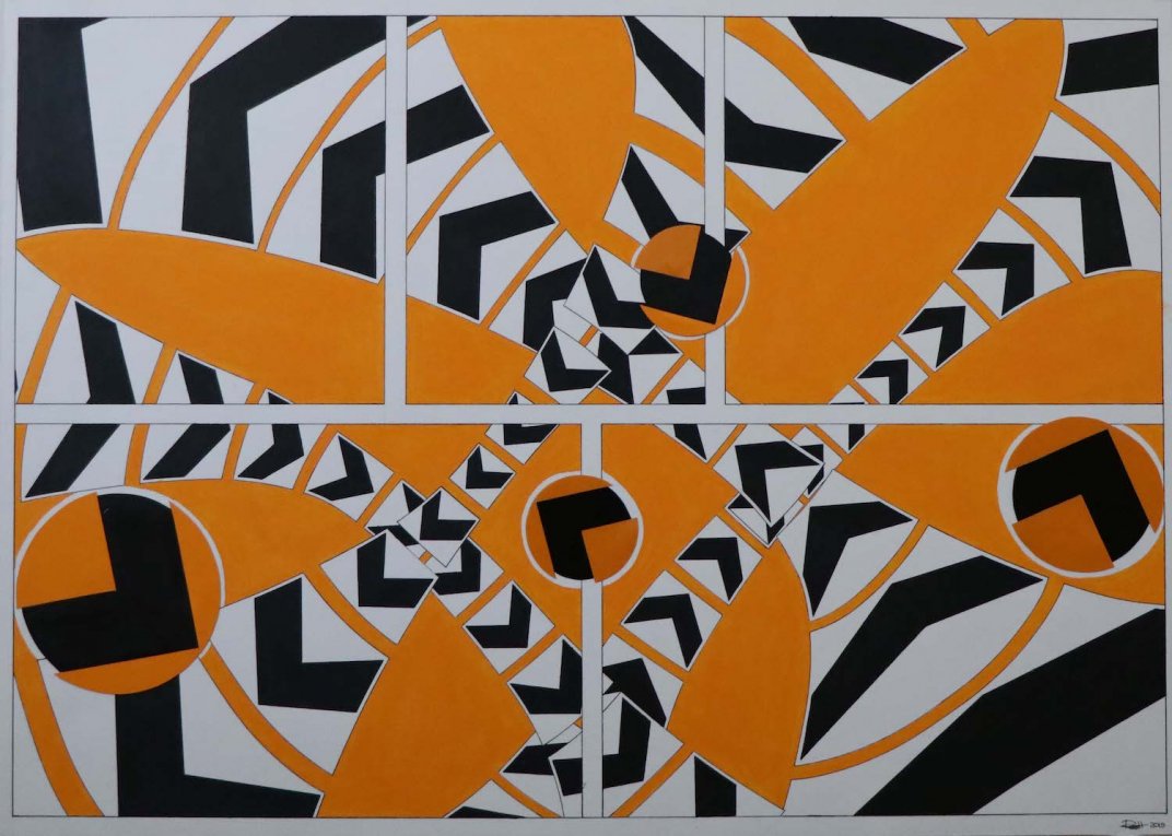 In this work I have extracted a “progress report” in the form of abstracted road directional signs and roundabouts. Using pen and acrylic paint I have depicted different phases of their design and construction. I have stripped away the suburban landscape to reveal the mysterious underground activity.