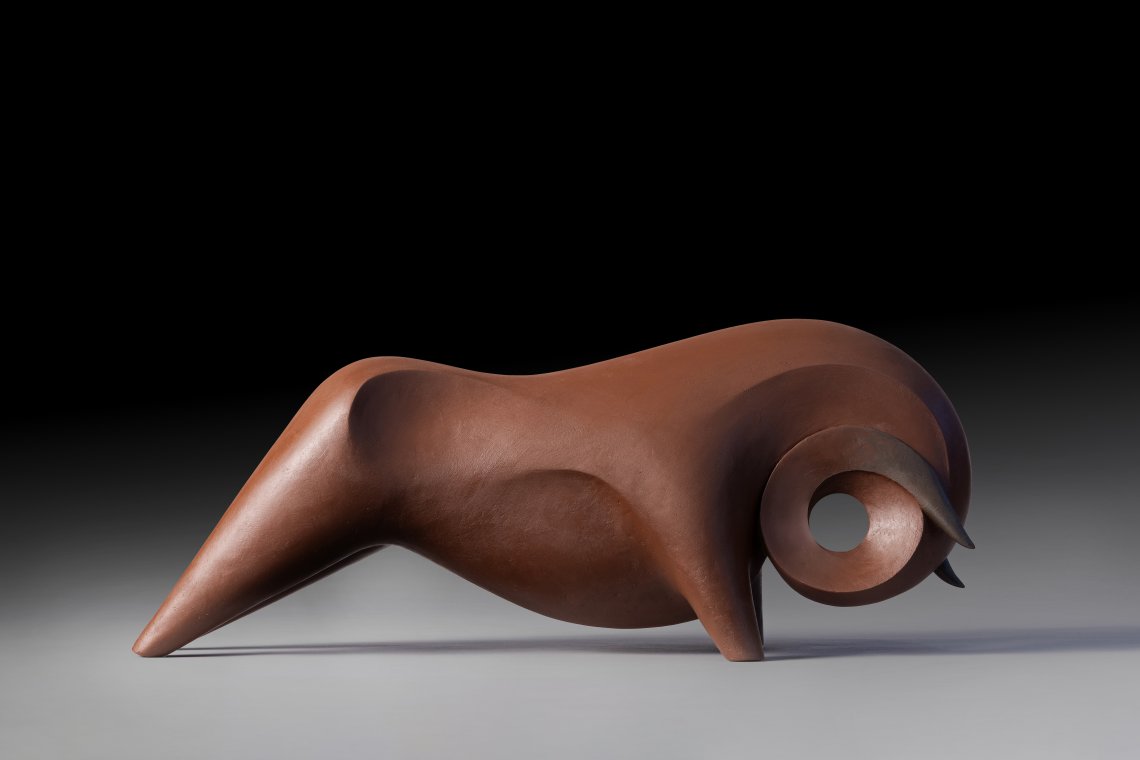 Le linee essenziali della scultura condensano un vigore primordiale. Muscoli tesi e movimenti sospesi si fondono in una testa vorticosa. Le corna, protese verso l’esterno, diventano il cuore pulsante dell’opera, esprimendo il desiderio di far rinascere dentro di sé quella forza e libertà originarie.