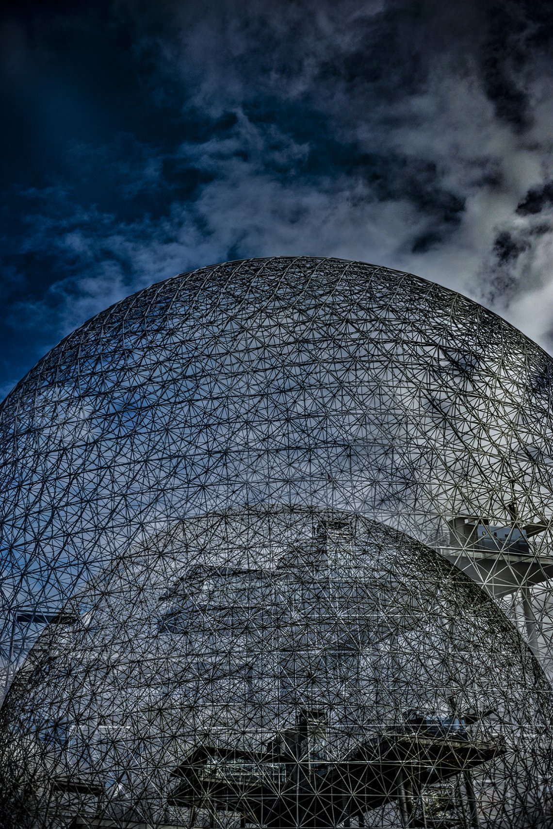 La double sphère crée un écho, comme une respiration visuelle. La structure est dense, mais elle flotte.