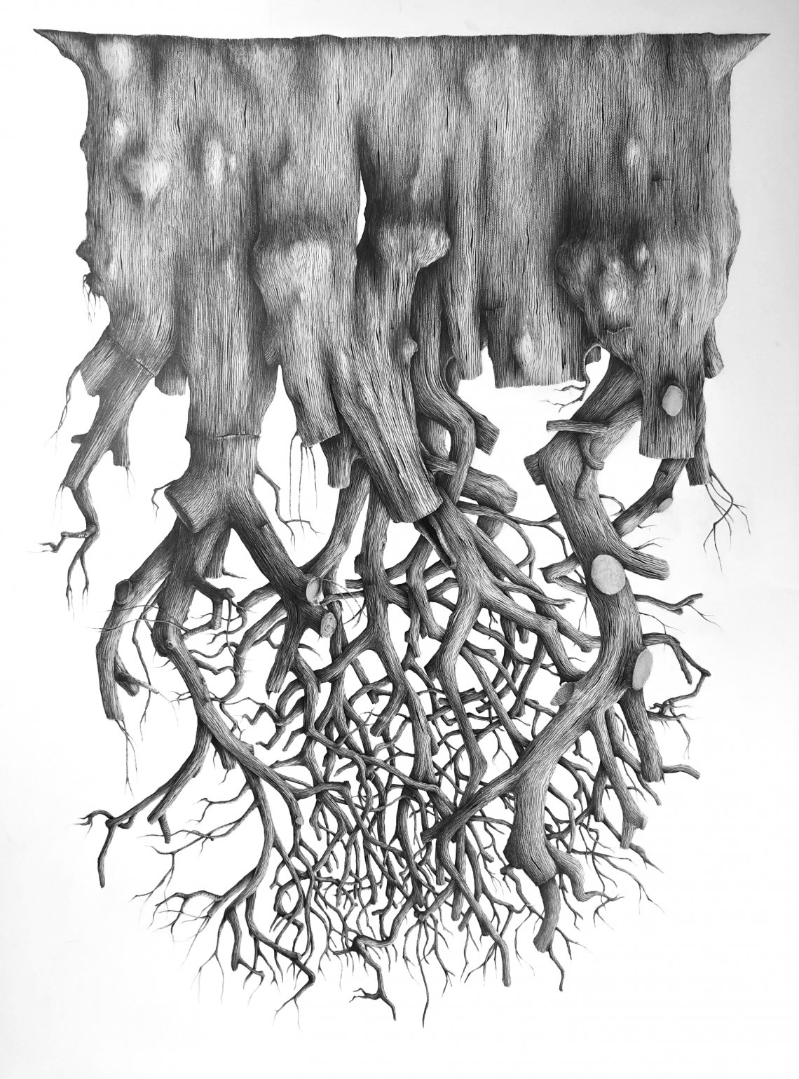 Driadi, 2026, graphite on paper, 140 × 100 cm.