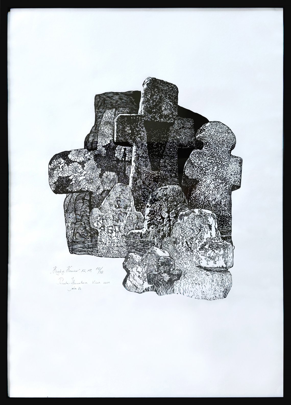 Artwork title : Title: "Stone" from the series "Crosses" Medium: linocut Size: 118x85 cm Year: 2024