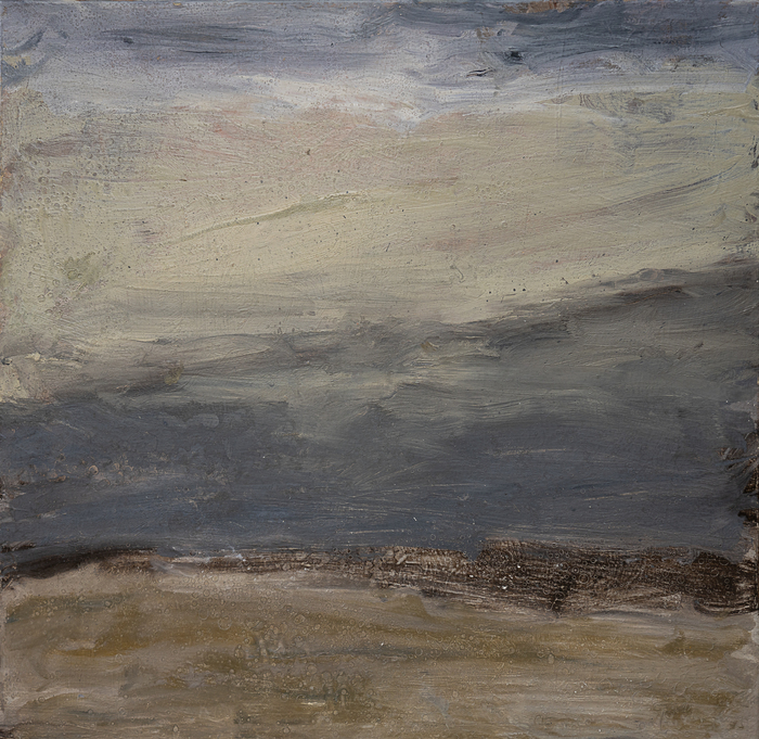 Abstract landscape painting. Oil and iridescent pigment on canvas