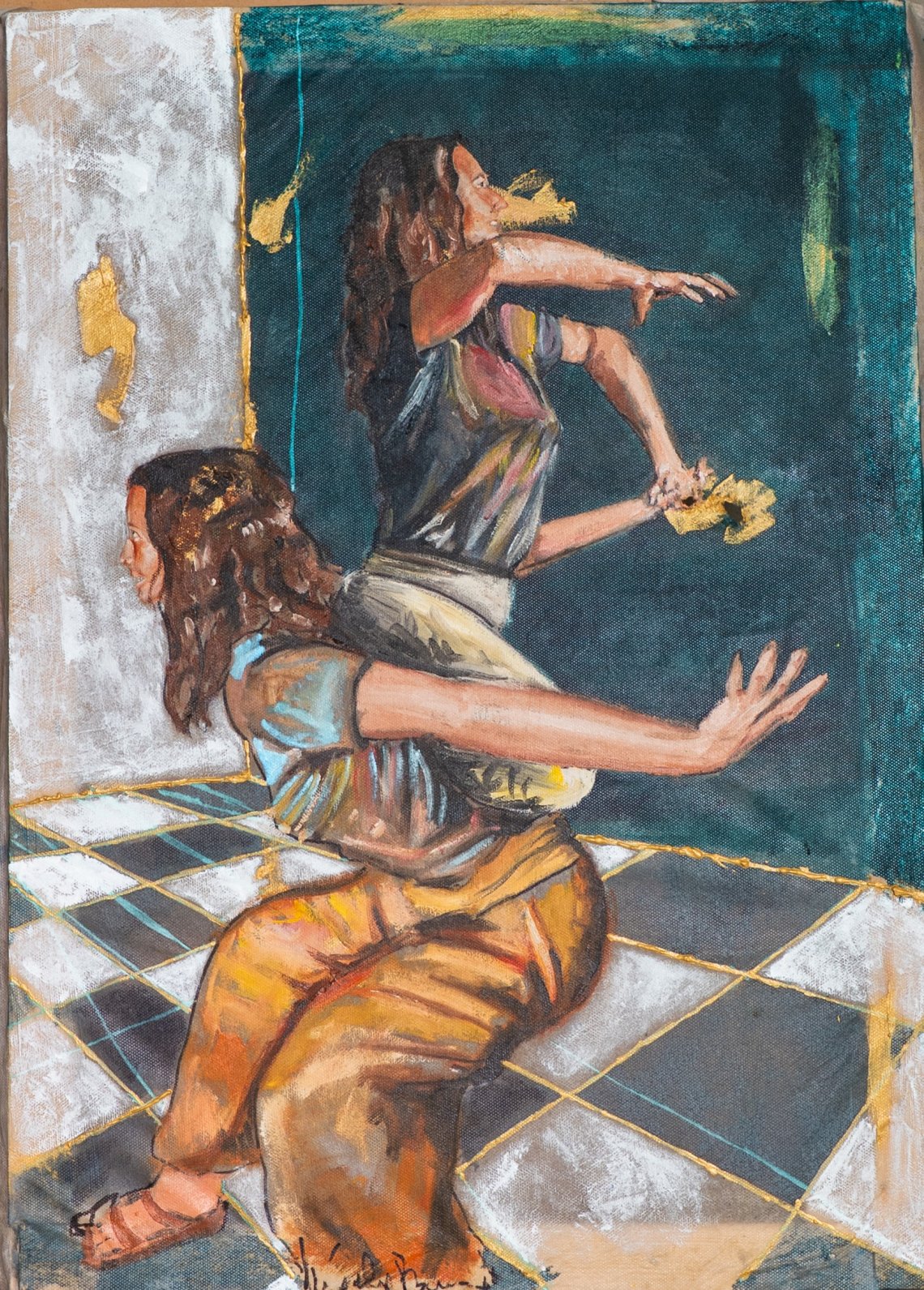 "Crescendo" è la rappresentazione della crescita personale, autosostenuta , sia fisica che emotiva. La scena vuole catturare la tensione positiva che esiste quando l'intento cammina pari passo con la forza d'animo. Tecnicamente l'opera è un mix di colori ad olio e resine colorate, stese sopra una tela autoprodotta con tessuto di recupero, nello specifico TNT. Tutto l'insieme vuole mettere in dialogo il precario con il solido, il pesante col leggero, lo statico con il dinamico, una lotta di opposti che genera equilibrio