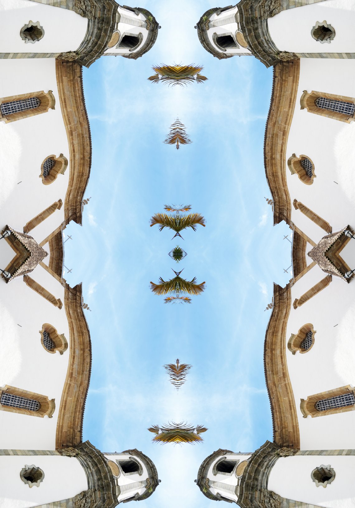 Nota Musicale is a definitive work from the series Echoes of the Choir, exploring the harmony between architecture and nature. Inspired by the ancient Korean rainmaking ritual, Gi-uje, the artist utilizes a precise mirroring technique—reminiscent of childhood "Butterfly Symmetry" paintings—to reveal hidden geometries within the atmosphere. Shot against the backdrop of Ouro Preto, Brazil, this work transforms palm leaves into a rhythmic and musical arrangement. By portraying the leaves as visual "notes/an eye," the piece emphasizes both reverence for nature and a spirit of preservation. The mounting under acrylic glass provides a crystalline depth and archival brilliance.