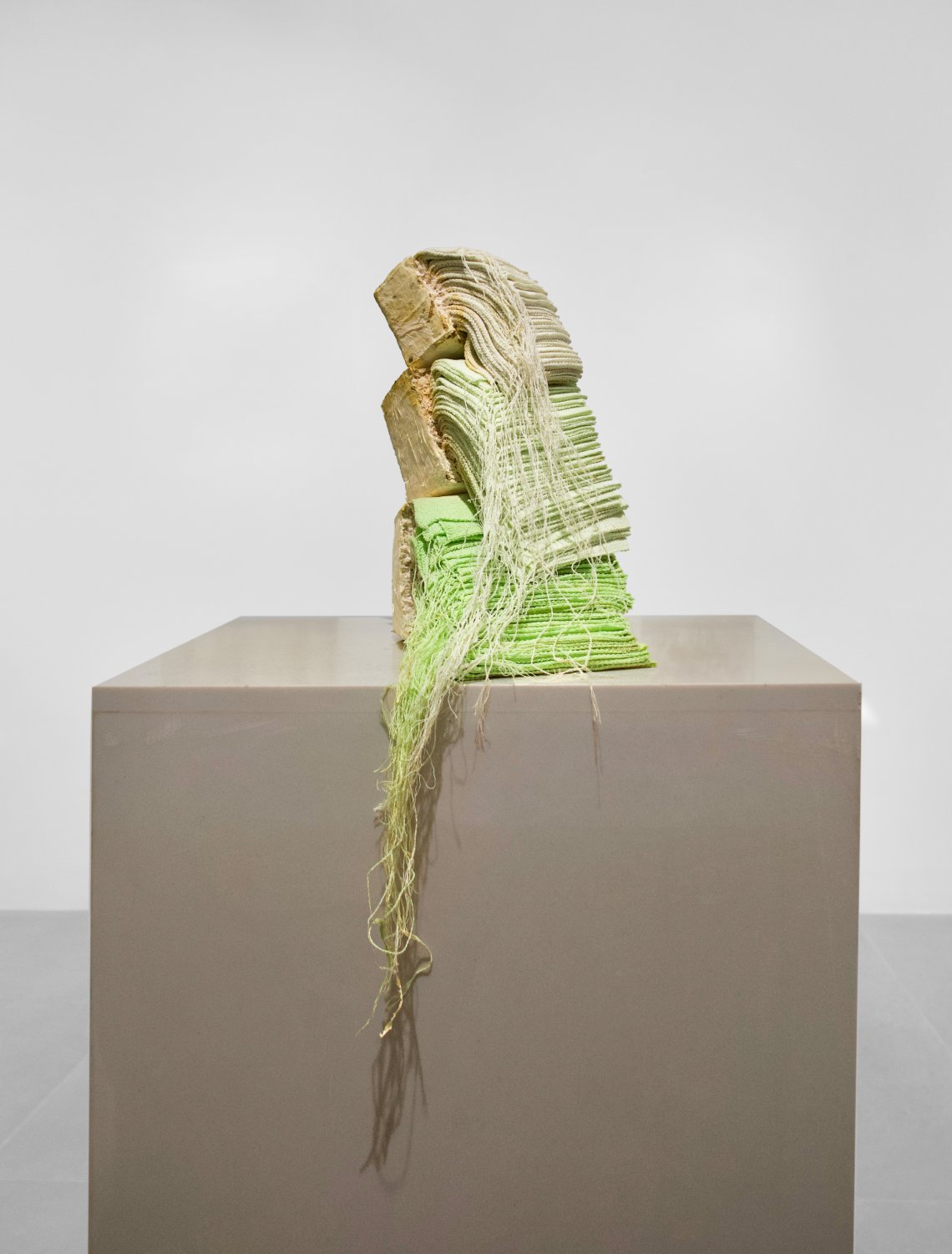 Zixiang Zhang's long-standing experience in textile art has made her aware that, due to industrialised production, textile waste is escalating at an alarming rate. The human-centred ecological solution results in vast quantities of discarded textiles being landfilled each year. However, burial is not the end of the life cycle of these textiles. They can build symbiotic relationships with natural life forms, such as fungi and microorganisms, in the soil and continue to exist in other ways. In Zixiang Zhang's work "Symbiosis" (2024), the entire work is composed solely of mycelium, straw, and knitted fabric. She attempted to utilise simple materials to interpret the close relationship between different materials. Moreover, she restored the process of knitted fabrics being buried, decomposed, swallowed, and regenerated, which prompted people to reflect on the impact of human activities on nature and to understand the core idea of removing the binary opposition between humans and nature in BioArt.