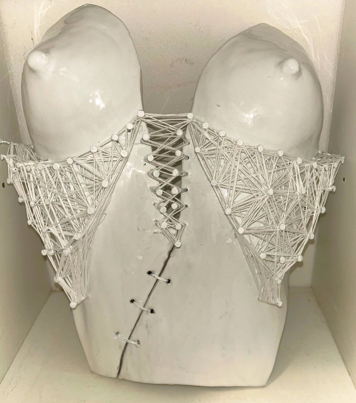 Il corpo come percorso obbligato: chiodi che vincolano, fili che stringono. Una frattura ricucita che trasforma la ferita in resilienza. La bellezza di restare intere.