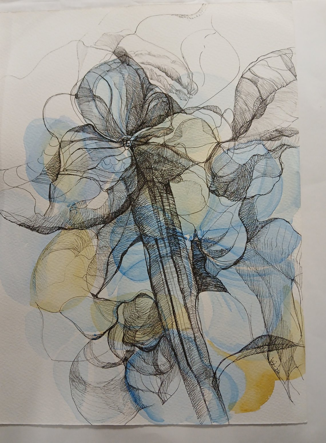 L’opera rappresenta un fiore dai petali delicati, realizzati con acquerello e definiti con l'utilizzo del rapidograph. La trasparenza e la leggerezza del colore mettono in risalto la fragilità e l’eleganza naturale del soggetto, conferendo alla composizione un senso di armonia e raffinatezza.