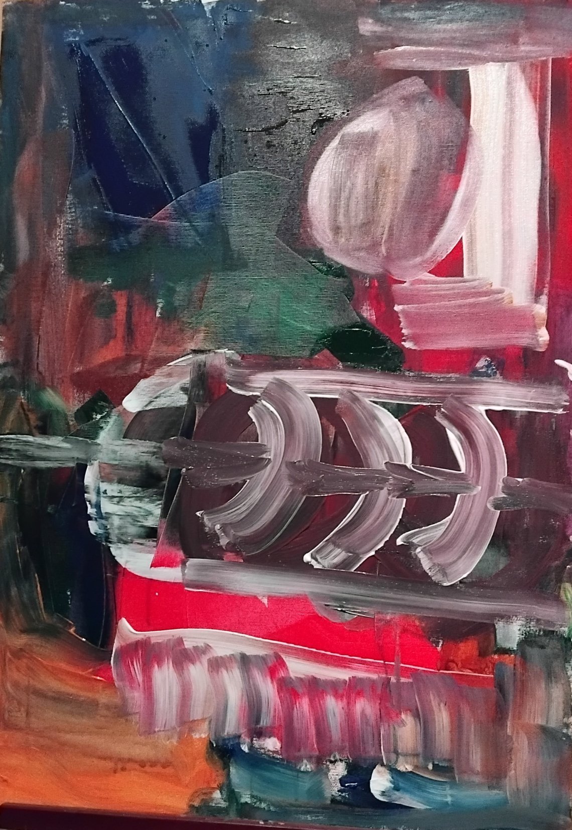 Questo dipinto astratto si basa su una forte energia gestuale che mira ad un dinamismo interno.L’intensità cromatica e la sovrapposizione di strati pittorici creano una profondità emotiva che riflette l’idea modernista del dipinto come “campo di energia” piuttosto che rappresentazione. In questo senso, si inserisce in una tradizione che va oltre la mera astrazione, per esplorare la pittura come esperienza fisica e psichica.