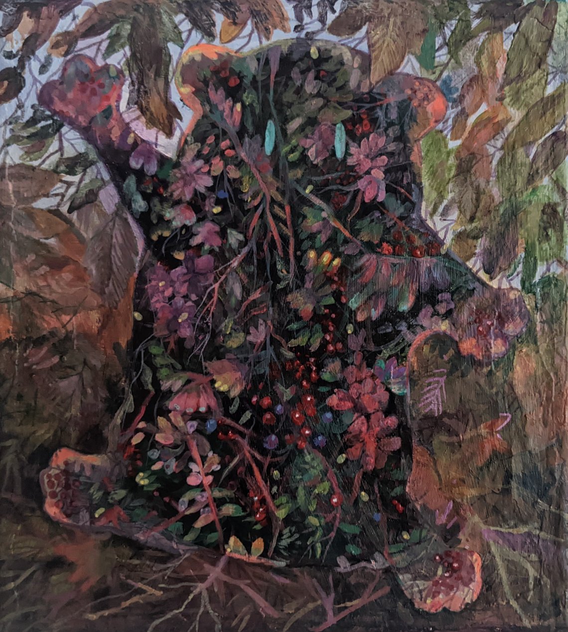 Artwork is part of a larger series called „I Miś U” which tells the story of memories and emotions related to childhood. I place spots that refer in shape to mascots – animals in various contexts and settings.