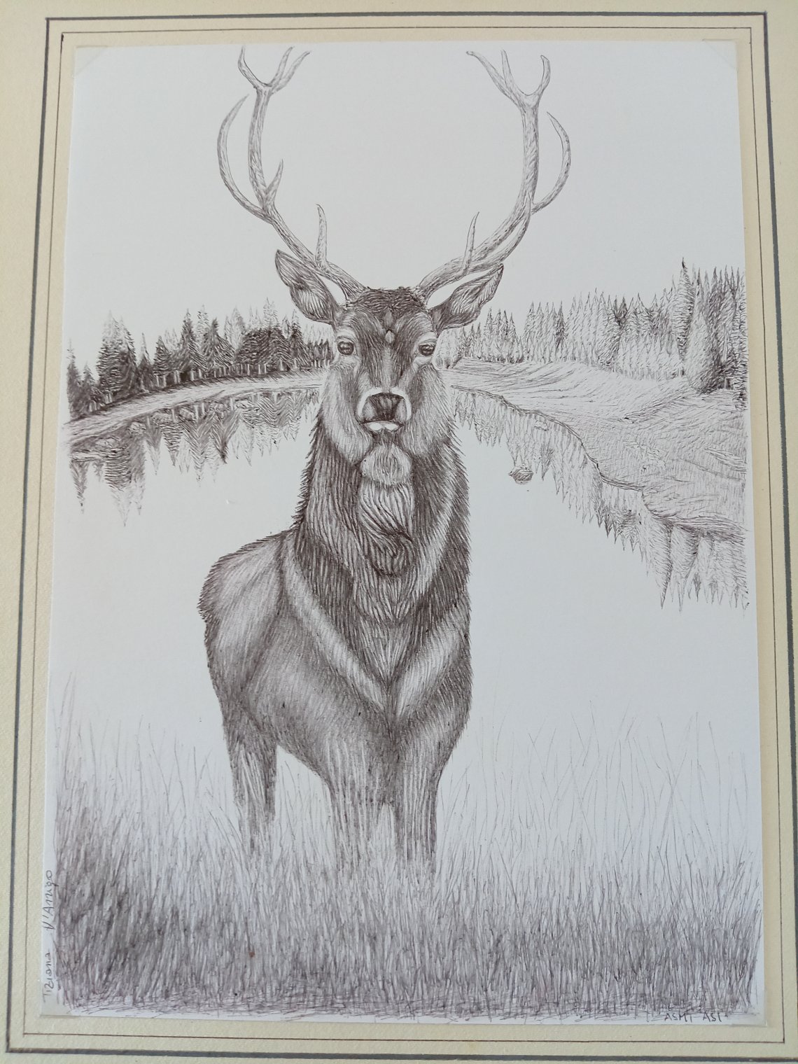 Penna Pilot 0,7 su carta dim.21x30cm Attualmente abito in un piccolo borgo circondato da montagne. Ho la fortuna di vedere cervi e caprioli che si avvicinano all' abitato. Nel loro modo di fermarsi e guardare danno l'impressione di avere un' innata predisposizione alla gentilezza e all' accoglienza che non fa differenze.