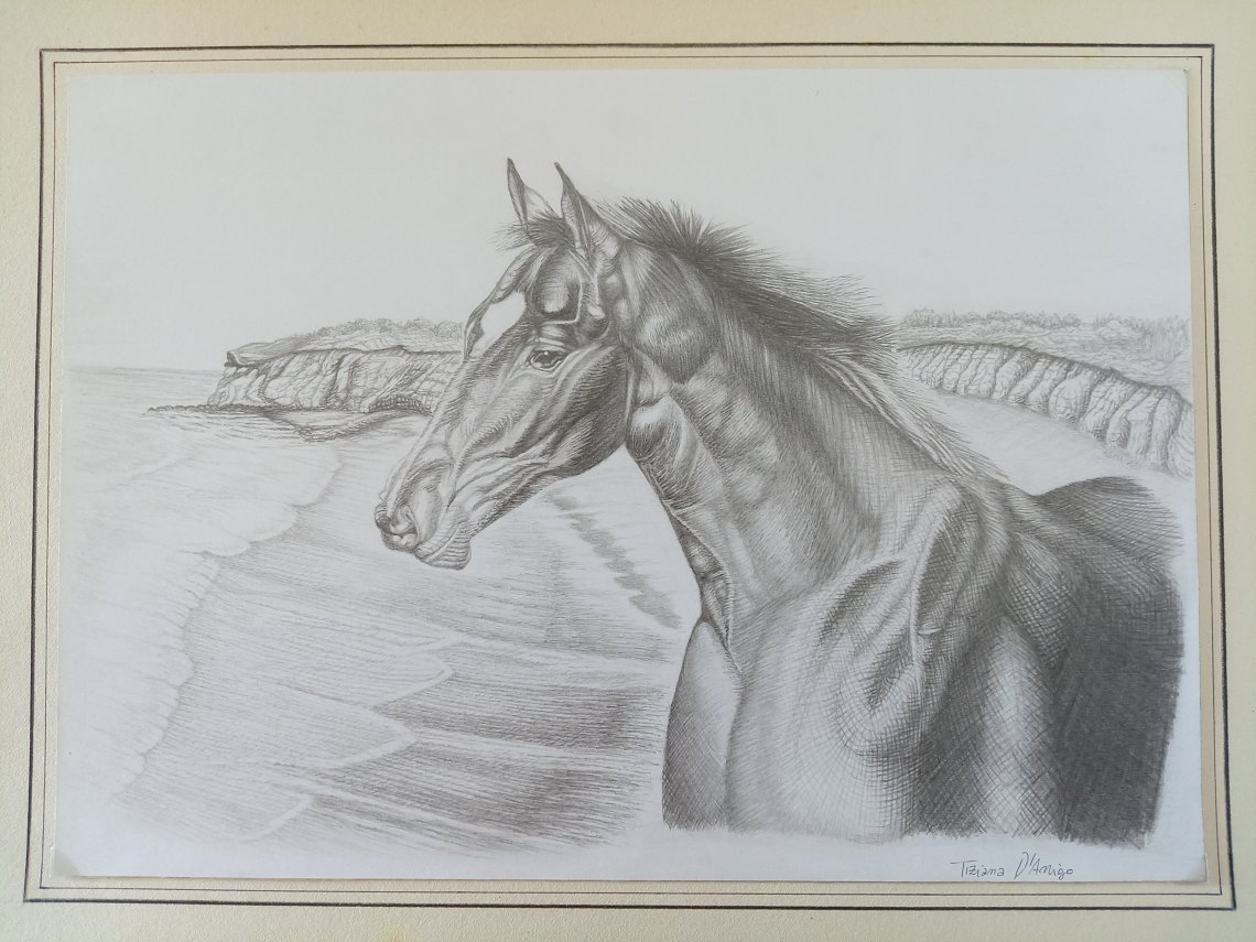Lapis su carta dim.42x30 cm Sono stata sempre colpita dalla fierezza di questo animale. Mi incanto a guardare i cavalli allo stato libero. Per me il cavallo è uno sprone nella ricerca della libertà interiore e del proprio potere personale.