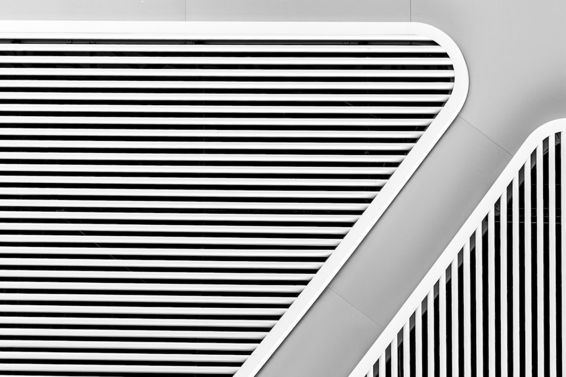 Captured at Istanbul Airport, this photograph unveils the often-overlooked artistry hidden overhead—transforming a segment of the ceiling into a study of abstraction and geometry. The image, in crisp black and white, magnifies the intersection of horizontal and vertical lines, set within the bold, sweeping contours of modern architectural design. The interplay of light and shadow further accentuates the rhythmic repetition of the slats, crafting an illusion of movement and depth. Free from obvious context, the composition challenges viewers to find order in minimalism, evoking both a sense of structure and fluidity. This piece invites the observer to pause in transit—finding beauty not in destination, but in the elegant lines of journeying spaces.