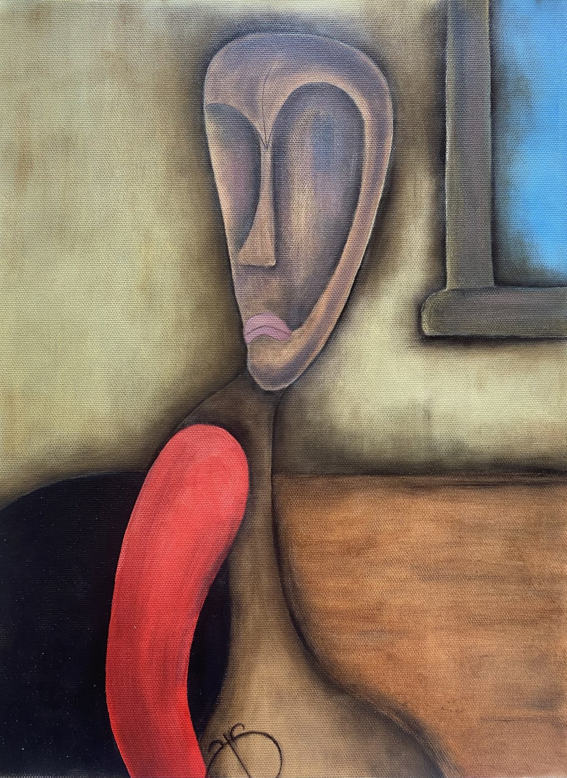 In immagine surreale che mette in scena l ascolto e la parola come anime separate .Un volto che non parla, ma sente,e una lingua che sembra cercare spazio per esprimersi.