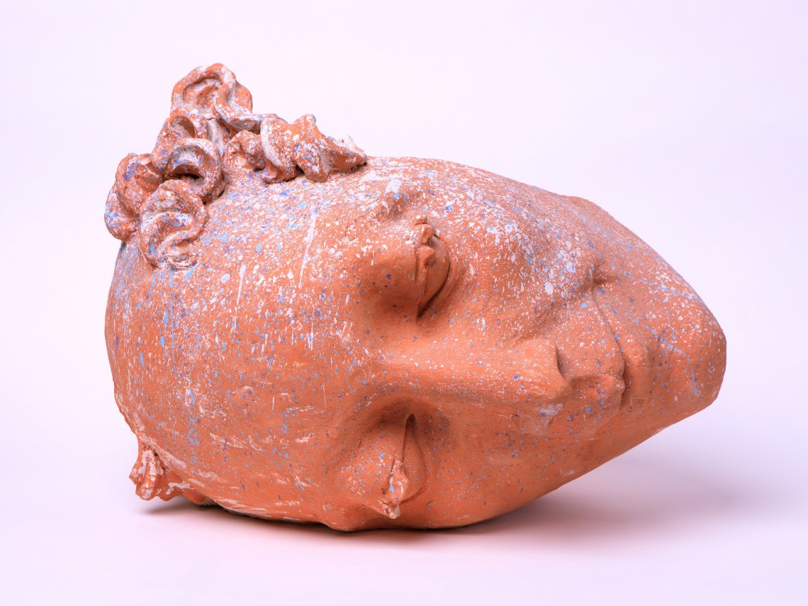 This ceramic portrait is inspired by my travels to Italy, especially to Pietrasanta when I saw sculptures of Mitoraj and Javier Marin. I am fascinated by baroque sculptures and rome terracotta. Self portrait was created using a ceramic techniqye, lige a vase. It is hollow, yet looks perfect with flowers inside. The technique is ceramics, engobes.