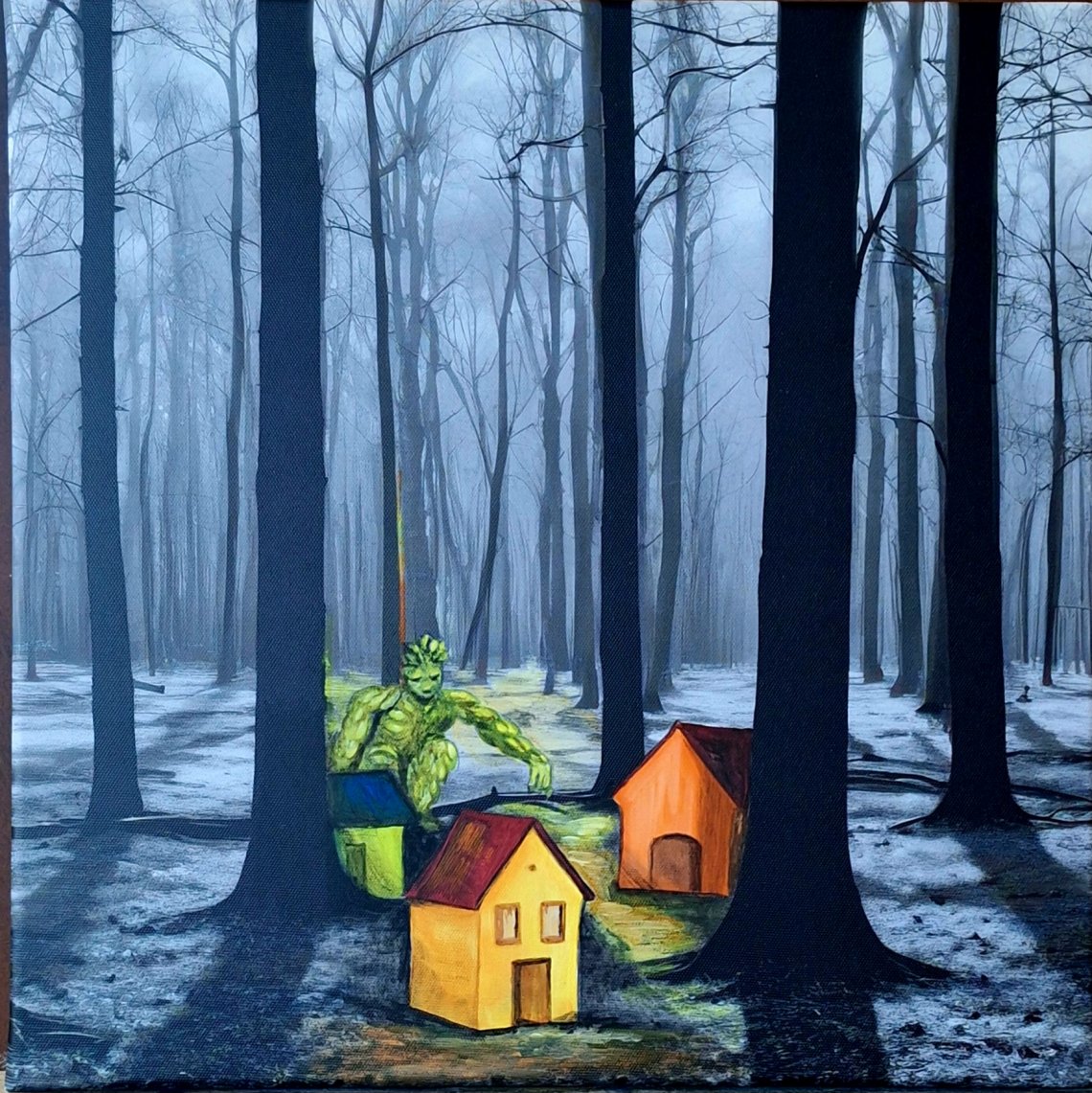 Acrylmalerei auf Foto-Leinwand. Der Wald birgt manche Geheimnisse...