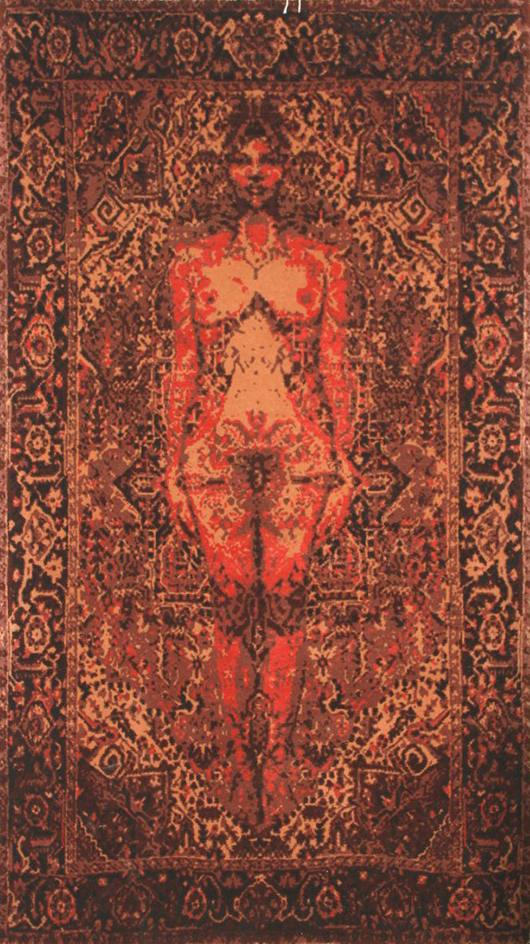 Intertwined Polarities series endeavors to create a visualization of an inner spiritual code. The tactile elements of the weaving are to evoke and express complementary intuitive, sensory, mental, and cultural insights via recurring visual metaphors. I grew up in a part of the world that has been and continues to be an arena of clashes the interweaving of threads from different cultures and civilizations, including a constant stream of oriental and occidental crisscrossing. I am intrigued by observing how humanity has been influenced by these cultures and civilizations old and new. In the selected weavings I try to capture various spiritual transformations and psychological restructurings the variable, the persistent, and the transient of the human condition at the crossroads. This series constitutes a phase in my exploration of this coexistence of clashing forces. My constant search for self-expression involves mapping images to a woven template, involving an age-old path including horizontal and vertical lines, a grid, handtied knots, dots, and the notion of a pixel. Hence, a natural outgrowth of this series that is in development entails a live artistic performance where these elements interact.