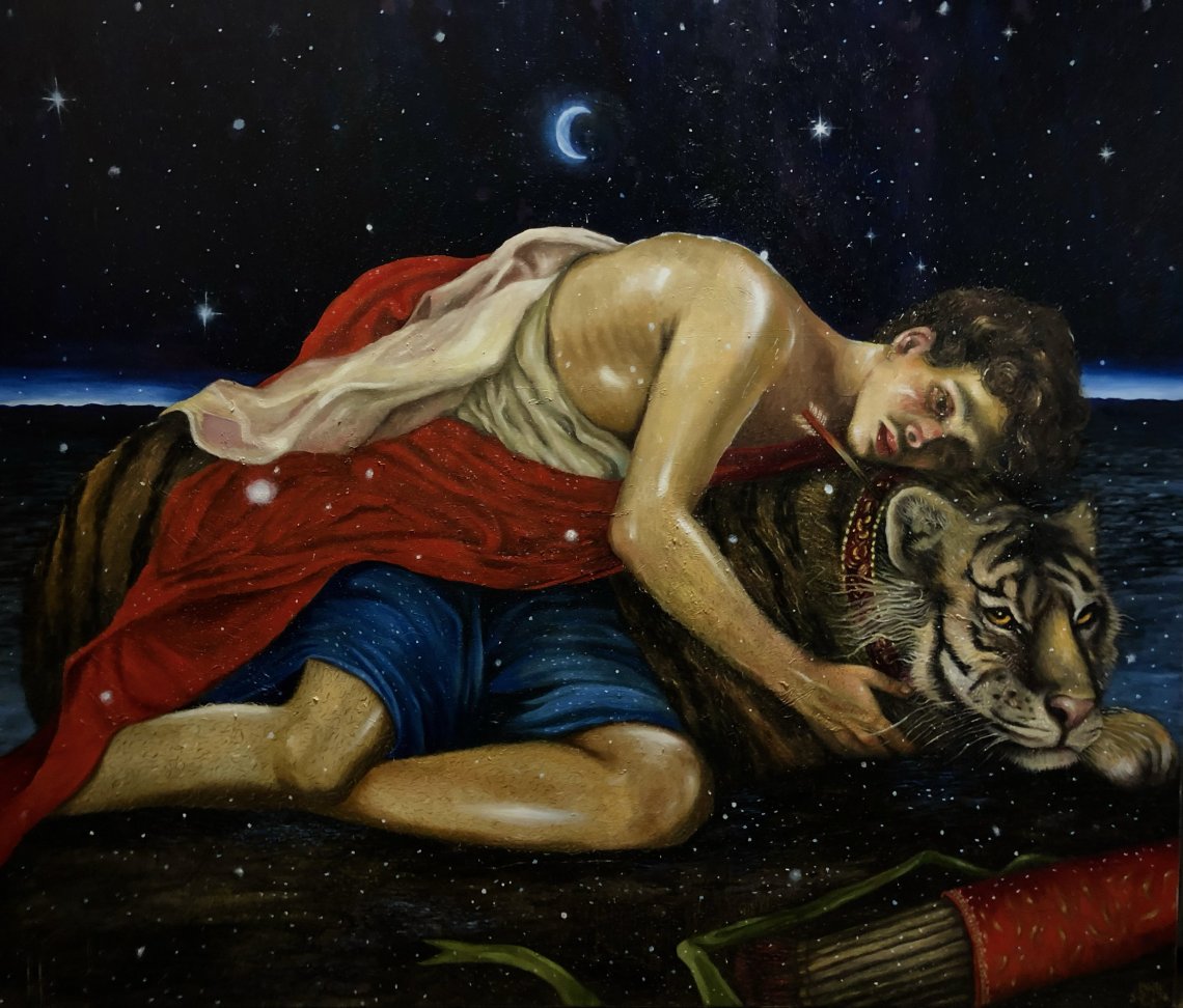 Her singing lured an animal. It was an old tiger who had enough vitality to grant mother’s survival. She ate his insides and used his flesh to cover her exhausted body. She used the last of her magic to unite herself with the animal.