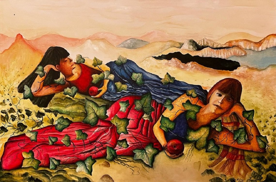 In this self-portrait illustrating my cultural duality as a Romanian immigrant, I evoke the conflicting emotions one feels about leaving their homeland—fear and excitement intertwined with the strong need to hold on to one’s roots.