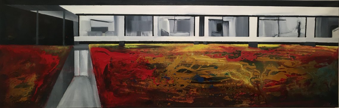 "Sweet home?" to obraz z nowego cyklu dotyczącego relacji ludzi na pozór szczęśliwych w swoich domach a jednak zamkniętych dla innych. Piękna rezydencje czy penthouse czy dostarcza nam na pewno szczęście? W obrazie można dostrzec napięcia, ale i intymne sytuacje pomiędzy mieszkańcami.