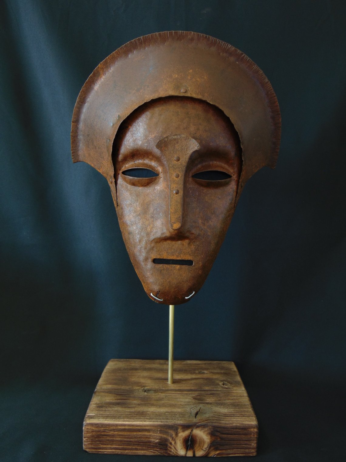 La maschera è sagomata da una lamiera piana in ferro con spessore di 1mm.