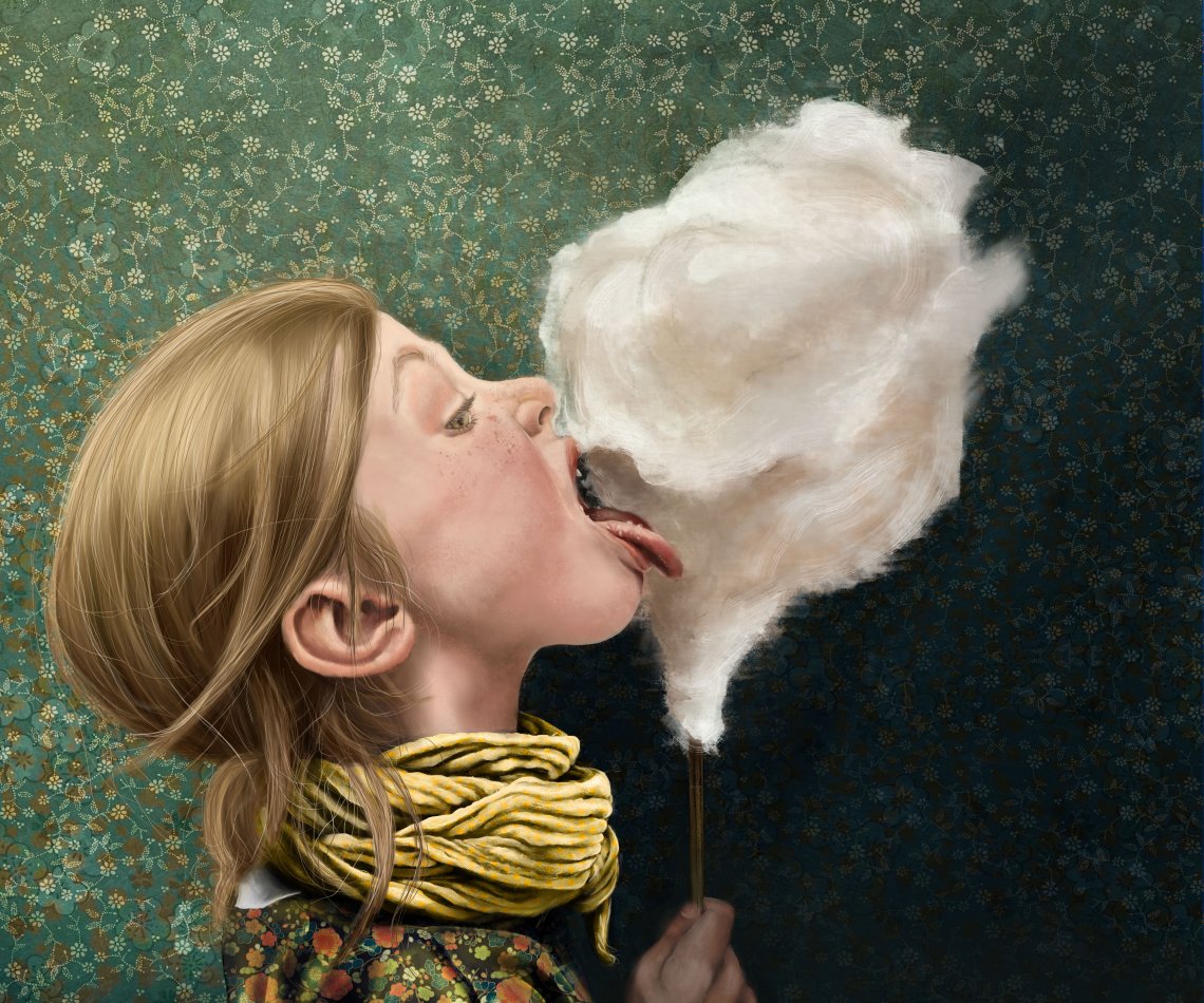 110 cm x 132 cm, Mixed Media on paper. The Candy Cotton Girl lives in the moment of feeling the candy taste. The dedication to the living moment is what the series CHILD is about, which Candy Cotton is part of.