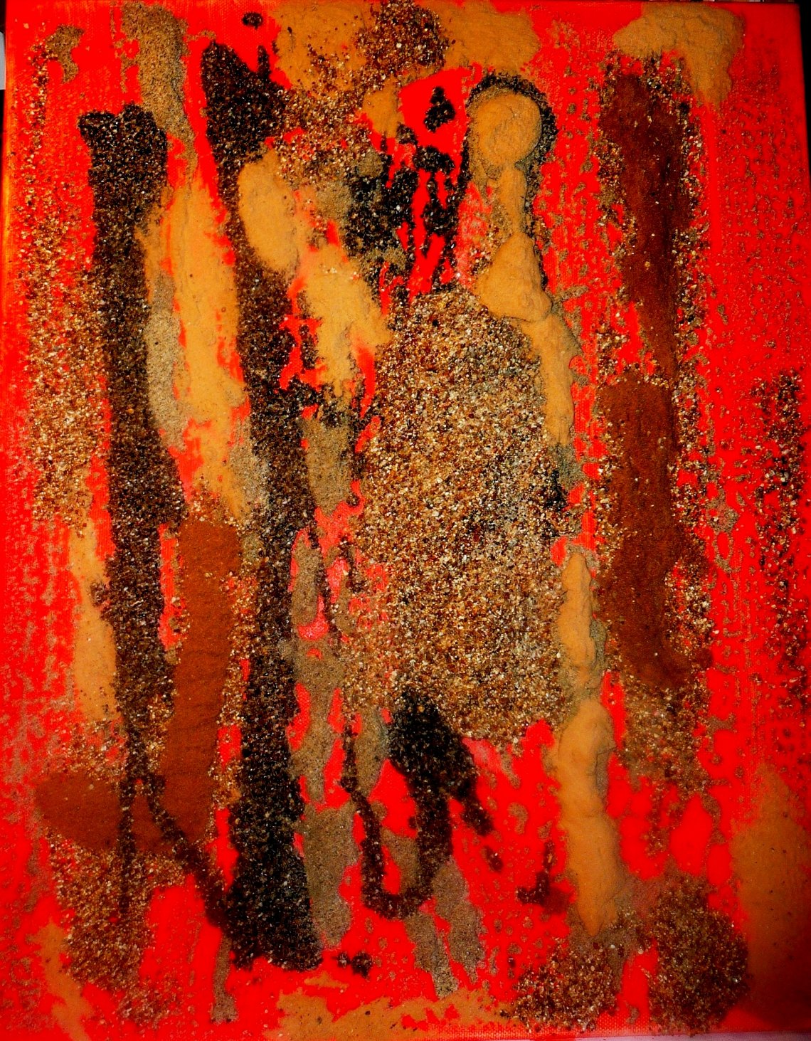 La sabbie si mescolano e riemergono in un rituale quasi tribale nella disgregazione della forma e nel divenire dell'essere, ripercorrendo una riemersione di luce che dà forma all'immaginario del fruitore che integra inconscio e coscienza, ma la coscienza dell’uomo purtroppo non porta mai alla pace, ma al continuo conflitto che purtroppo non sono sopite dall’età della pietra ma viviamo, purtroppo anche in epoca ATOMICA