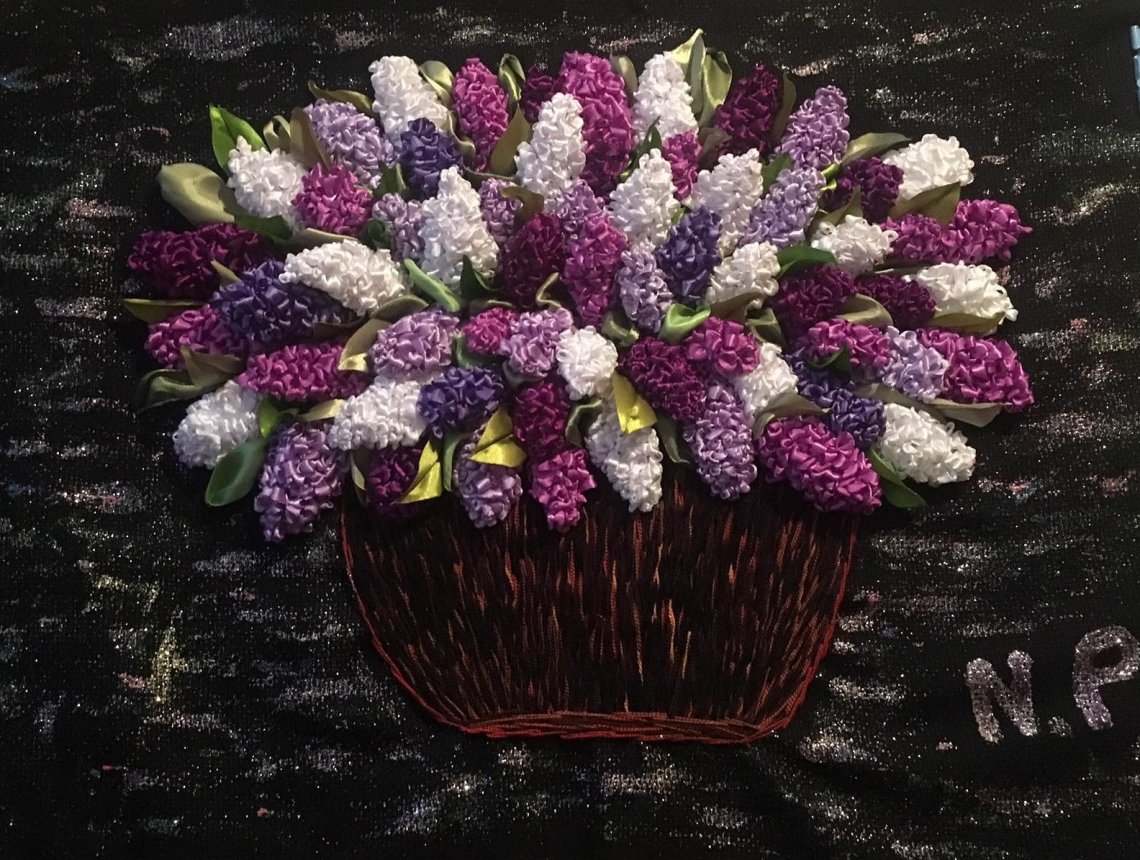 medium used; moulene threads, silk ribbons, mixed techniques, size 45x60