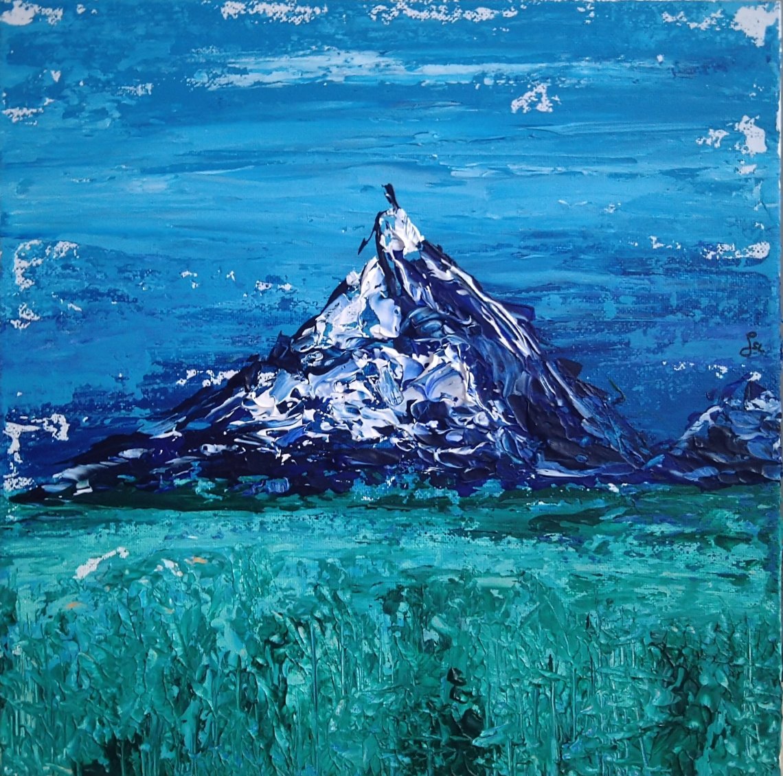 Cette oeuvre représente les paysages alpins de ma région que j'aime peindre en utilisant le style impressionisme. Le tableau a été réalisé au couteau à peinture en m'inspirant des Alpes avec contemplation. J'y ai mis ma sensibilité et ma vision colorée des paysages qui nous entourent.