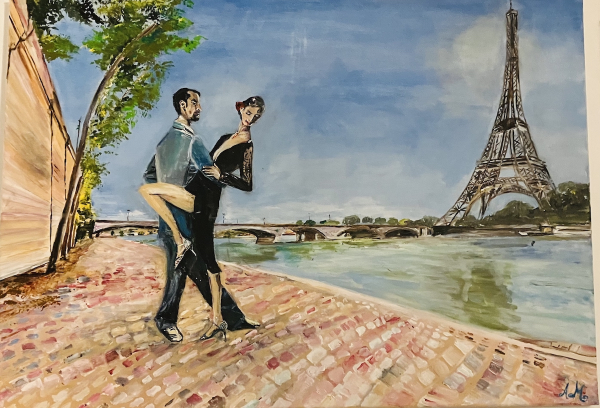 Originalgemälde von Annette Matzelle (AM) mit dem Titel: „ la dolce vita/ Tango in Paris“, Datierung: Beendigung des Werkes 11.11.2023 - mit Acrylfarben gemalt. 70x50 cm